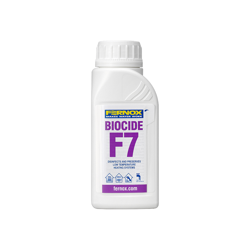 El biocida F7 protege contra el crecimiento de bacterias y hongos en sistemas de calefacción residenciales y sistemas de agua refrigerada no evaporativa. Fernox recomienda