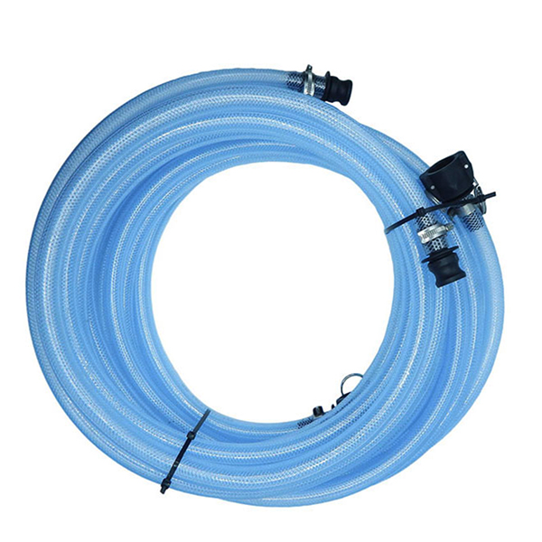 Set of two x 8m ¾” clear braided PVC dump and overflow hoses fitted with cam action fittings to extend