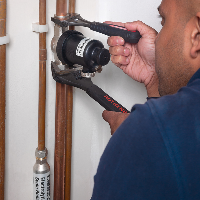 The TF1 Sigma Mini is a magnetic system filter, specifically designed for use in tight spaces. The filter can be easily fitted onto horizontal, vertical, or any 360⁰ pipework orientation.