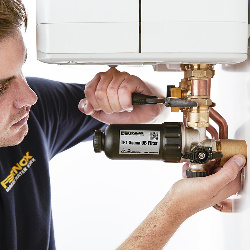 TF1 Sigma Filter, suyun ısıtma ve soğutma sisteminde kullanılan karışık metallerle temas ettiğinde kimyasal reaksiyon sonucunda sistemde birikerek sirküle eden korozyon kalıntılarının zararlı etkilerinden kazanı korumak için tasarlanmıştır. Sistemin Fernox Protector serisinden kaliteli bir inhibitör ürünle işlenmesi, yönetmeliklere ve en iyi uygulamalara uygun olarak uzun vadede tortu oluşumunu önleyecektir.